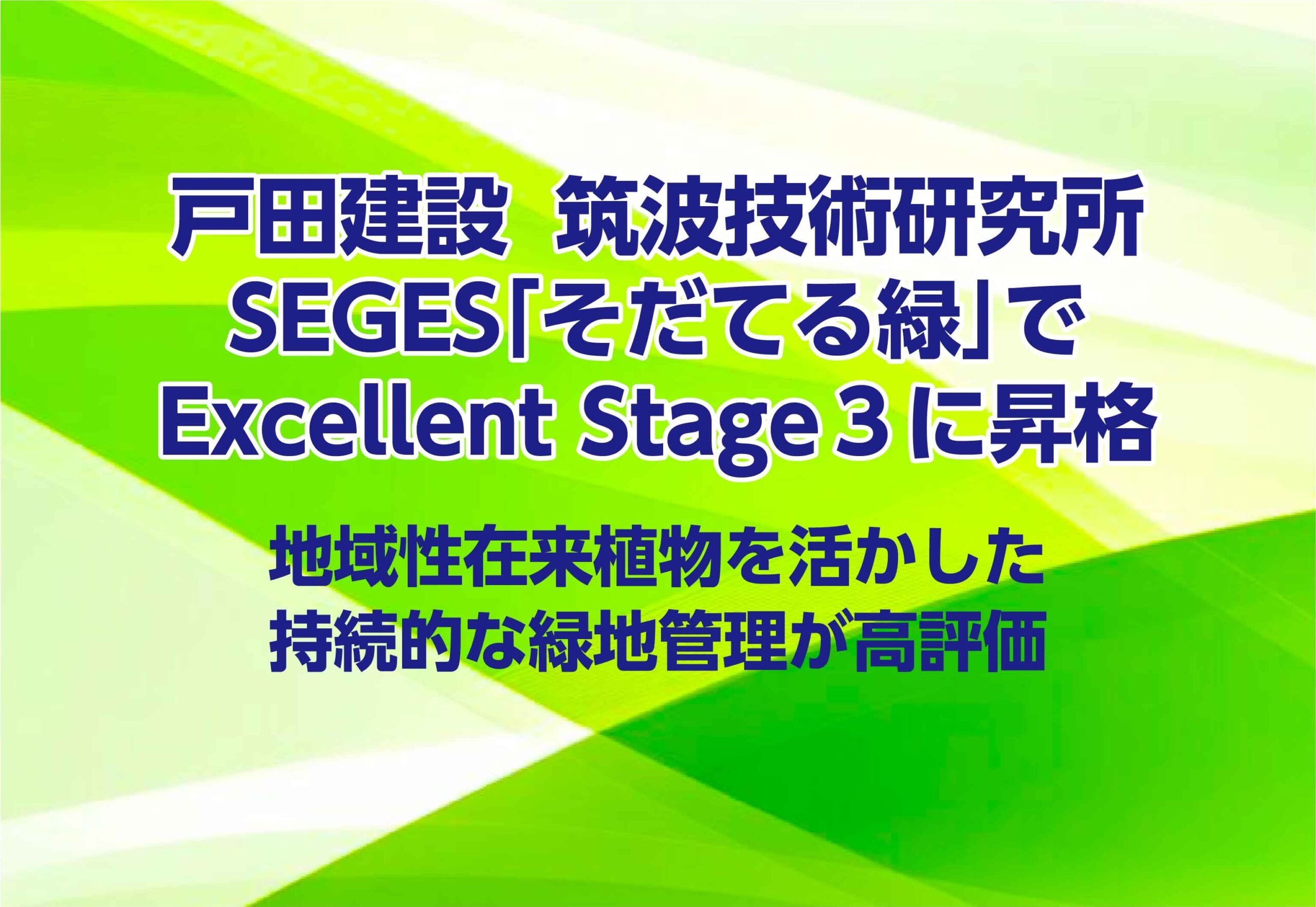 戸田建設 筑波技術研究所、SEGES「そだてる緑」でExcellent Stage3に昇格