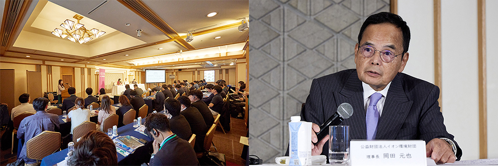 挨拶に立ったイオン環境財団理事長である岡田元也氏は、1990年にイオン創業者の岡田卓也氏が設立。爾来35年間、地球環境を守る活動を続けてきた歴史を振り返り、2010年の生物多様性条約COP10で採択された国際的な目標である「愛知目標」が定められた同年に国連生物多様性条約事務局の協力を得て、生物多様性みどり賞が創設されたことを紹介。同賞がイオン環境財団での中心的な活動の1つとなっていると語った。