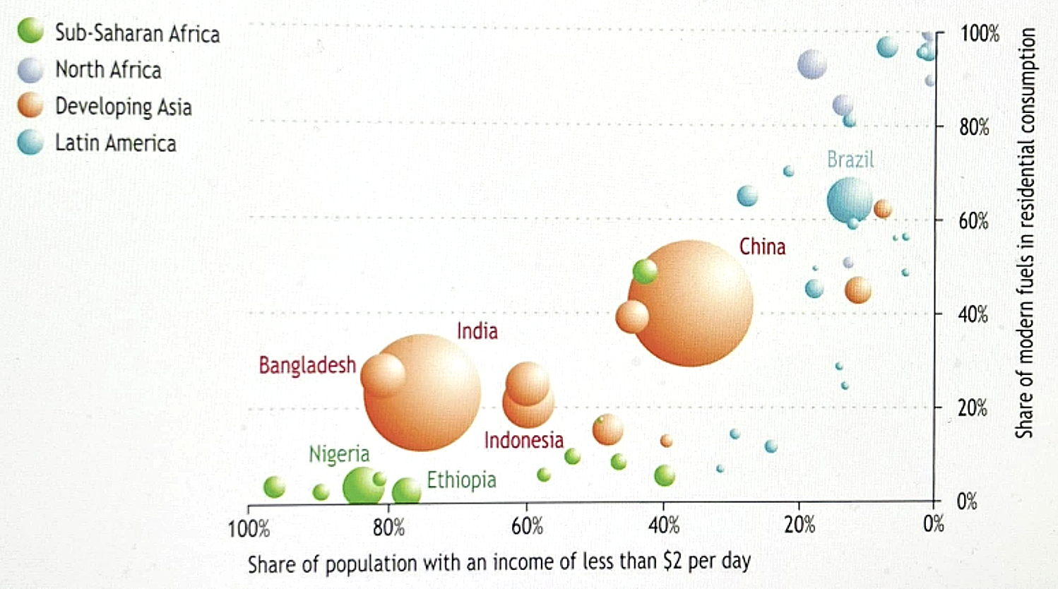 貧困の度合いが大きいほど、近代的燃料の確保が困難で、薪や炭などの伝統的な燃料に依存していることが明らかである。