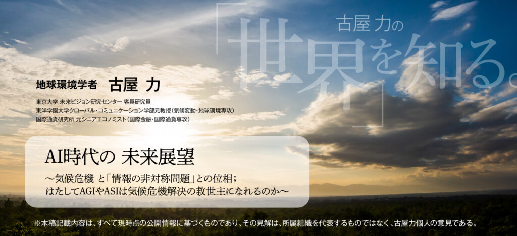 まったくの門外漢なので、牛歩のごとく勉強しながらAIが気候危機対策に貢献する可能性について、少しずつ研究しているところではあるが、好い機会でもあるので、以下「AI時代の未来展望」について気候危機対策に対する貢献の観点から、少し考察してみた。