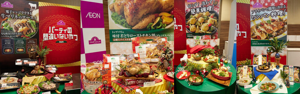 こうした背景を踏まえ、 “パーティの間違いないやつ2025”をテーマに、クリスマスパーティに欠かせないチキンを中心としたごちそう素材、食物アレルギーに配慮した「やさしごはん」シリーズ、みんなで楽しめる体験型スイーツなど、“作る楽しみ”から“食べる満足”までを叶える新しいパーティスタイルをイオンのプライベートブランドであるトップバリュが提案する発表会となった。