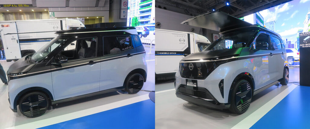 停車時にソーラー・パネルを展張して発電効率を約2倍にアップするのがミソで、年間走行距離約3000km分の発電量があれば外部充電は不要、というユーザー・アンケートを基に、発電量は走行時約300W、展張時(停車時)約500Wを実現、災害時は給電拠点として活躍が期待されています。
