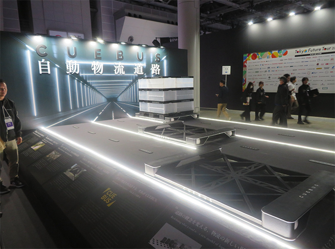 今回同社が世界初公開のアイテムで、国交省主導の新物流インフラ構想の具現化と言っていいでしょう。簡単に言えば、第2東名高速道路の地下に物流専用の無人リニアモーター物流インフラを構築。業界標準の「1.1パレット」を最小単位に、24時間・365日移送させるというものです。