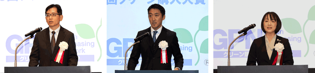 環境省大臣官房政策立案総括審議官 飯田博文氏、経済産業省大臣官房審議官GX担当 福本拓也氏、農林水産省大臣官房審議官(技術・環境)、西 経子氏の来賓挨拶の後、大賞受賞団体が登壇。代表者がスピーチを行った。