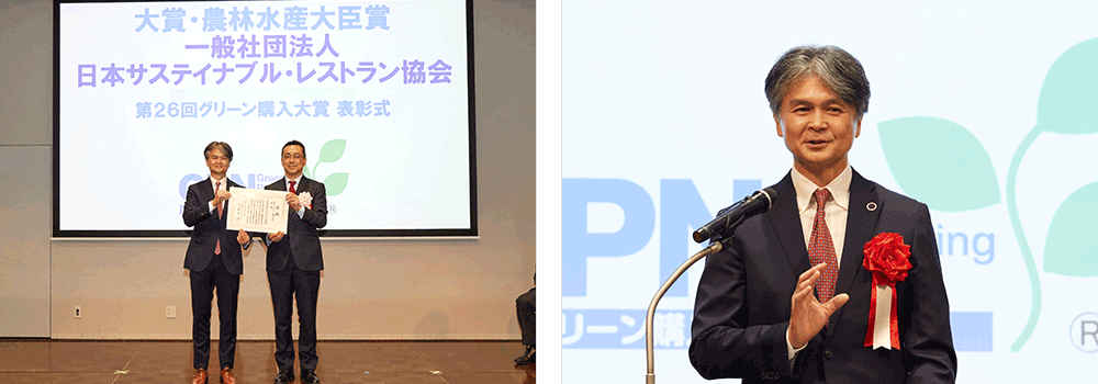 大賞・農林水産大臣賞を受賞の一般社団法人日本サステイナブル・レストラン協会は、代表理事 下田屋 毅氏がスピーチ。