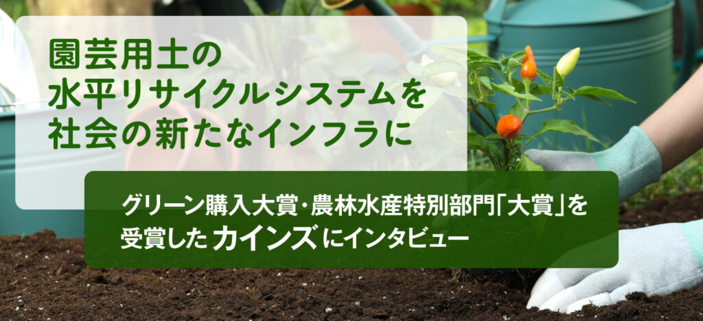 ホームセンター「カインズ」を日本全国に展開し、日用品からDIY用品まで幅広い商品を提供する株式会社カインズは、園芸用土の水平リサイクルシステムを構築した取り組みが評価され、第26回グリーン購入大賞・農林水産特別部門において「大賞」を受賞した。