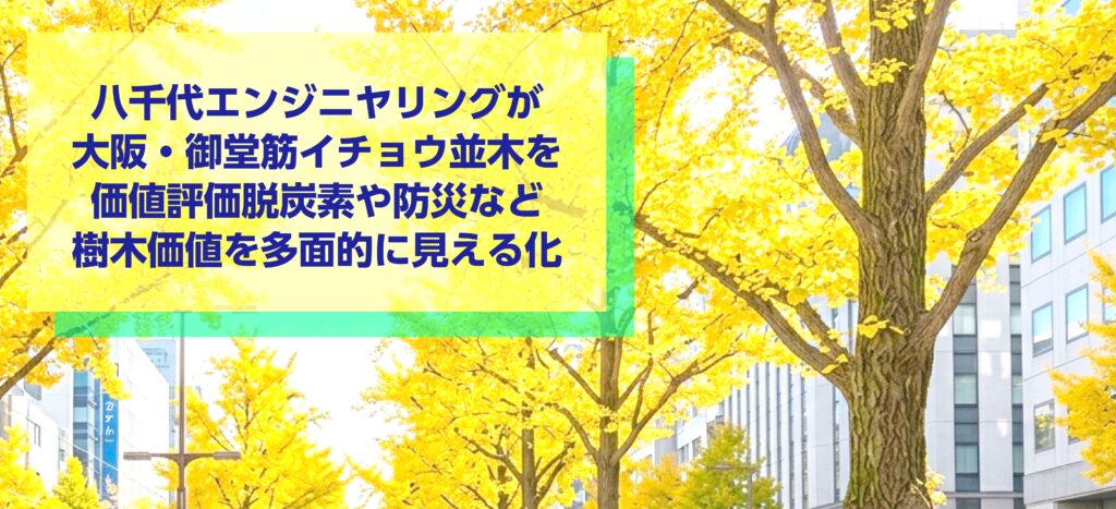 八千代エンジニヤリング株式会は、大阪市建設局より受託した業務において、大阪のシンボルであり大阪市指定文化財でもある「御堂筋のイチョウ」約870本を対象に、樹木の価値を算出・評価した。