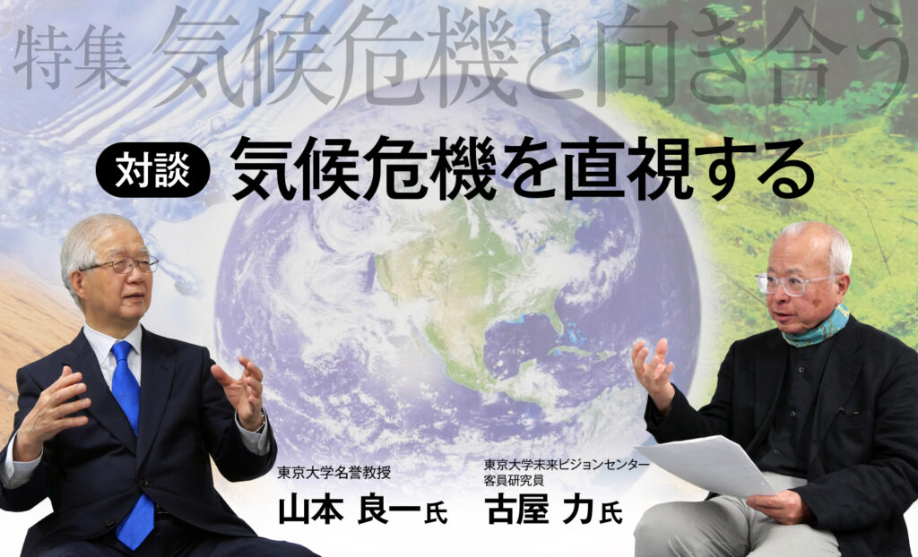 特集「気候危機と向き合う」の冒頭を飾るのは、気候非常事態宣言の啓発活動の最前線を走り続ける東京大学名誉教授の山本良一氏と東京大学未来ビジョンセンター客員研究員であり、Vaneの「世界を知る」執筆者の古屋力氏の対談。2人の地球環境学者が「気候危機を直視する」というテーマで世界が直面している現状とこれから私たちが取り組むべき課題について語り合った。