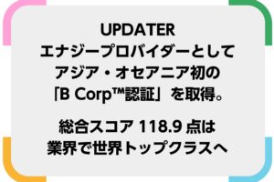 UPDATER、エナジープロバイダーとしてアジア・オセアニア初の「B Corp™認証」を取得。~総合スコア118.9点は、業界で世界トップクラスへ~